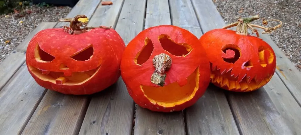 Première étape : la traditionnelle découpe de citrouilles ! Sous les derniers rayons de soleil d’octobre, on s’est installés dehors, armés de couteaux, de cuillères et d’un courage variable selon les participants. Certaines citrouilles sont devenues de véritables œuvres d’art… d’autres, des exceptions non gérées. 😅