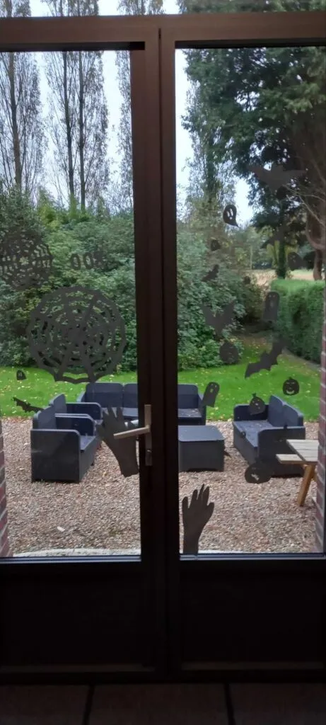 Deuxième phase : la déco d’Halloween. Après une brève inspiration Instagram (et quelques échecs critiques), on a finalement pris le coup de main. Astuce du jour : coller avec de l’eau, c’est écolo… mais ça a son caractère et ça demande un peu de patience pour que ça tienne ! Un peu comme quand on teste un nouveau snippet de code : parfois ça prend au premier essai. Et parfois il faut ajuster quelques détails pour que tout s’imbrique parfaitement. 😬
